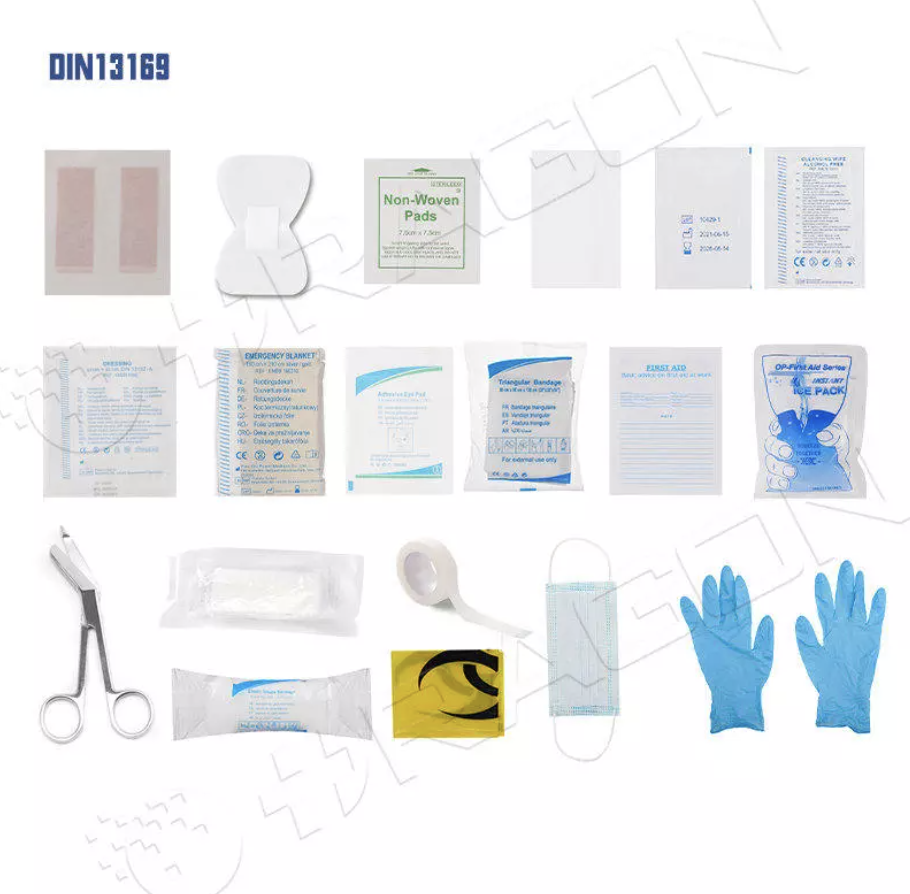 Designed for paramedics, ambulances, and disaster response. Includes trauma dressings, CPR masks, burn treatments, and splints. -